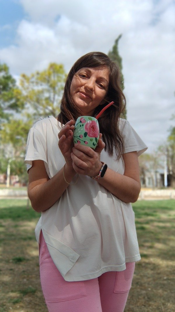 Mate perita de algarrobo pintado a mano con tabla 1 calado y cuenco de 10 cm.